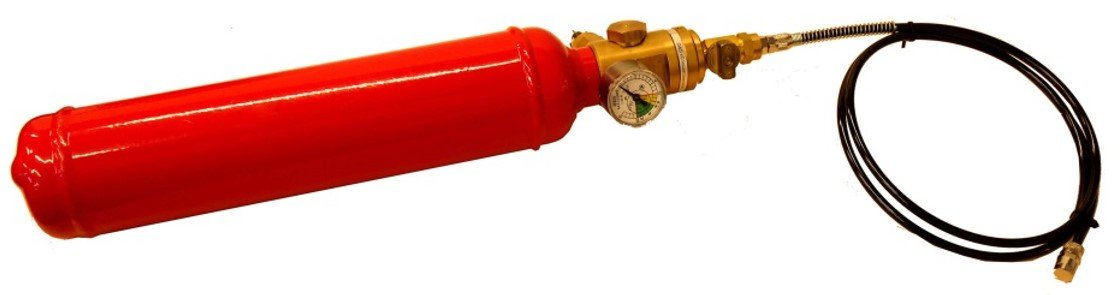 Автономное устройство газового пожаротушения. Автономная установка газового шкафного тушения прямого действия вертикального исполнения; защищаемый объем не более 3 м³, масса ГОТВ ФК-5-1-12 - 2 кг, t-раб.-40…+50°С, (высота х диаметр) 462х83 мм, масса 2,02 кг. В комплект поставки входят: модуль пожаротушения с ГОТВ, ЗПУ, шаровой кран, манометр для контроля газа-вытеснителя.