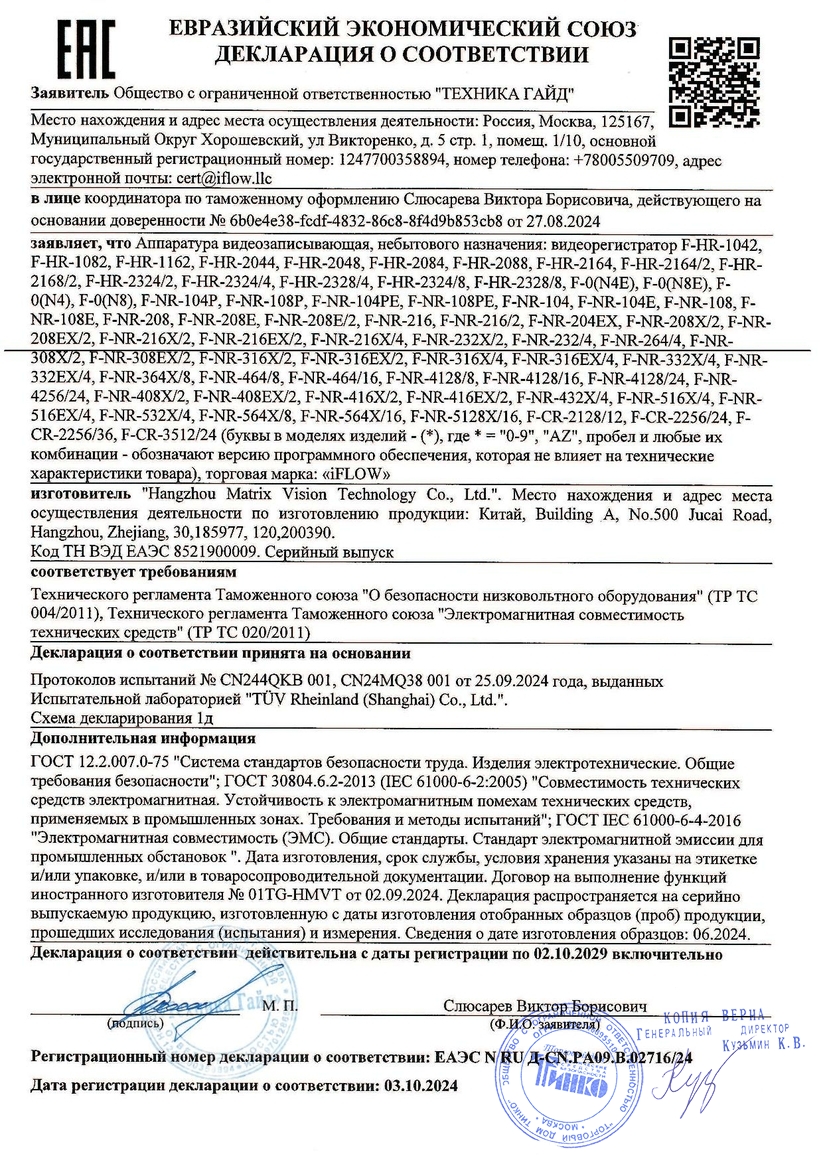 IP-видеорегистратор 4-канальный. Видеорегистратор IP 4-х канальный; 1xHDMI, 1xVGA до 1080Р; битрейт вход/выход- 40/60 Мбит/с; разрешение записи до 6 Мп; H.265+/H.265/H.264+/H.264; 1 SATA до 8 Тб; видеоаналитика: обнаружение пересечения линии, обнаружение вторжения c помощью аналитики камеры; RTSP, ONVIF, 1xRJ45 10/100 Мбит/с; 2xUSB; DC 12 В, 1.5А; 10Вт(без HDD); -10°C...+55°C; 265х223х48 мм.