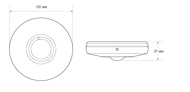 Извещатель охранный объемный оптико-электронный потолочный. Извещатель охранный объемный, угол обзора 360°, диаметр зоны обнаружения 12 м, оптико-электронный пассивный, твердая сферическая мультифокусная линза, микропроцессорный, потолочный, -20°С +50°С