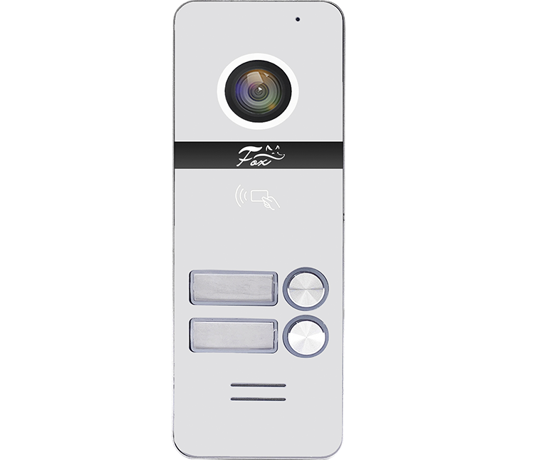 Вызывная панель цветная. Вызывная видеопанель FX-CP80 на 2 абонента, цвет -Серебро. Встроенный контроллер со считывателем Mifare, объем карт и ключей до 200шт; 1/2.7" HD CMOS 1920x1080, Разрешение камеры: AHD 1080P/720P/CVBS; ИК-подсветка: до 5-и метров; ИК фильтр; Объектив 2.7mm, Угол обзора 120°; Питание: DC 12V от монитора; Управление замком НО/НЗ; Крепление: накладное; В комплекте: 3-и Mifare ключа брелока, мастер ключи для добавления и удаления пользователей, уголок и козырек, -10…+50°С.