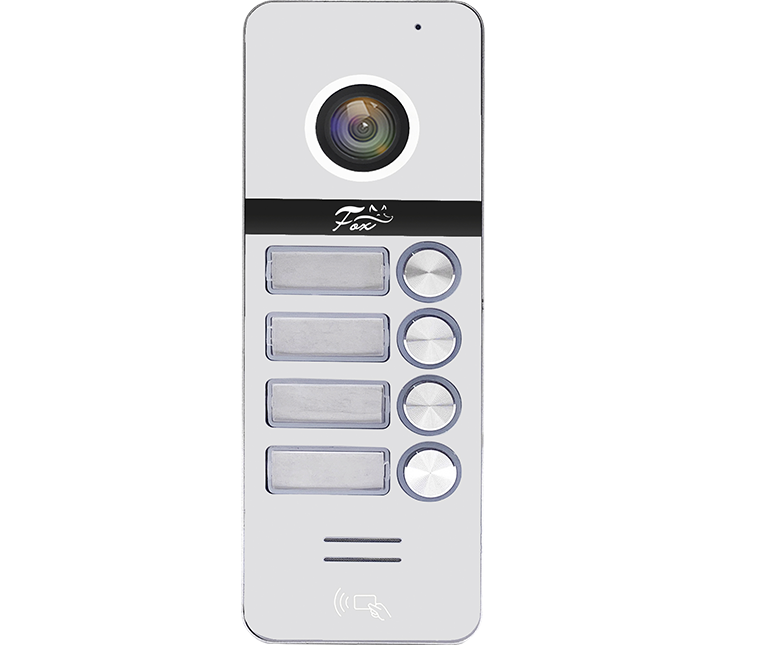 Вызывная панель цветная. Вызывная видеопанель FX-CP80 на 4 абонента, цвет -Серебро, Встроенный контроллер со считывателем Mifare, объем карт и ключей до 200шт; 1/2.7" HD CMOS 1920x1080, Разрешение камеры: AHD 1080P/720P/CVBS; ИК-подсветка: до 5-и метров; ИК фильтр; Объектив 2.7mm, Угол обзора 120°; Питание: DC 12V от монитора; Управление замком НО/НЗ; Крепление: накладное; В комплекте: 3-и Mifare ключа брелока, мастер ключи для добавления и удаления пользователей, уголок и козырек, -10…+50°С.