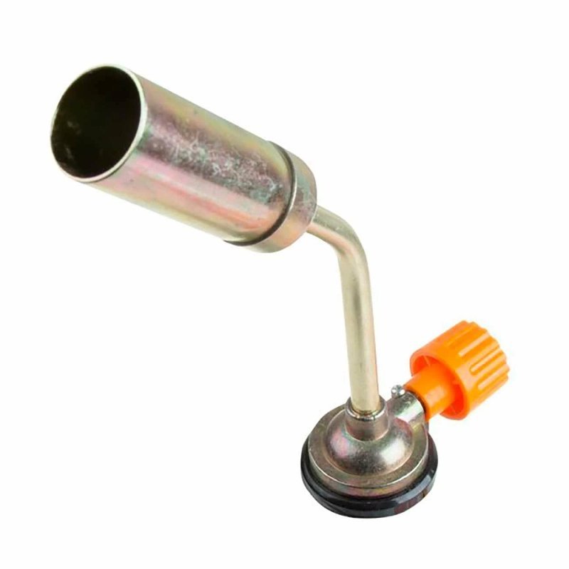 Газовая горелка. Газовая горелка-насадка общего назначения, без пьезоподжига, регулятор мощности пламени; для газа бутан/изобутан; Ø сопла 22 мм, длина горелки 190 мм, под стандартный газовый цанговый баллон, вес 110 г.