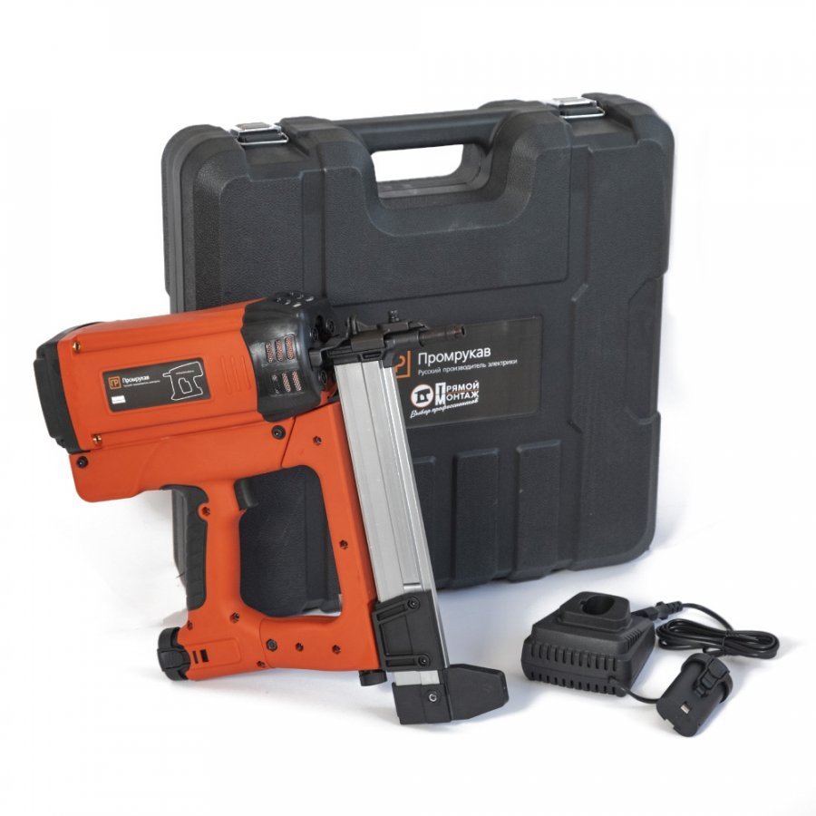 Газовый монтажный пистолет "Промрукав" предназначен для прямого монтажа различных изделий к основанию из бетона, металла или кирпича. Для данной модели монтажного пистолета не требуется компрессор и подключение к электросети. Область применения — Прямой монтаж распределительных коробок, пластикового и металлического крепежа, текстильных и металлических лент, и прочих инженерных систем, монтаж направляющих для гипсокартона и натяжных потолков, штукатурной сетки, гидроизоляционных мембран и теплоизоляционных материалов, фанеры к полу. Монтажный пистолет и множество аксессуаров уложены в надежный и практичный кейс, который защитит инструмент от грязи и пыли. Вес пистолета с АКБ 2 А-ч составляет — 3,7 кг. Вес кейса с пистолетом, двумя АКБ, зарядным устройством и аксессуарами составляет — 7,6 кг. В комплект входит: кейс, АКБ 2 Ач — 2 шт., ствол диаметров 11 мм., защитные очки, крюк, перчатки, ключ с шестигранной головкой - 3 шт., зарядное устройство, руководство по эксплуатации, гарантийный талон. Используемые размеры монтажных гвоздей от 15-40 мм. Применяемые газовые баллоны — FC165-2-1 и FC165-1-1.