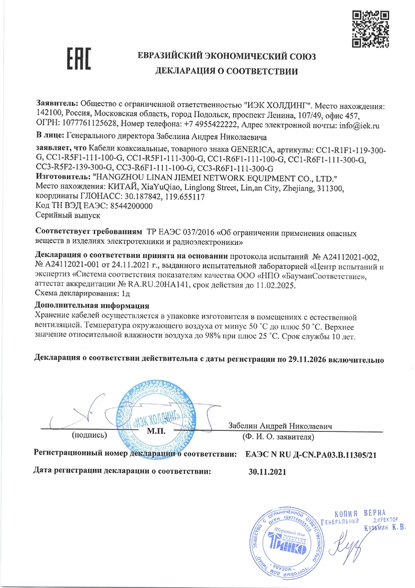 GENERICA RG6 медный 75Ом FPE PVC белый (CC3-R6F1-111-300-G)
