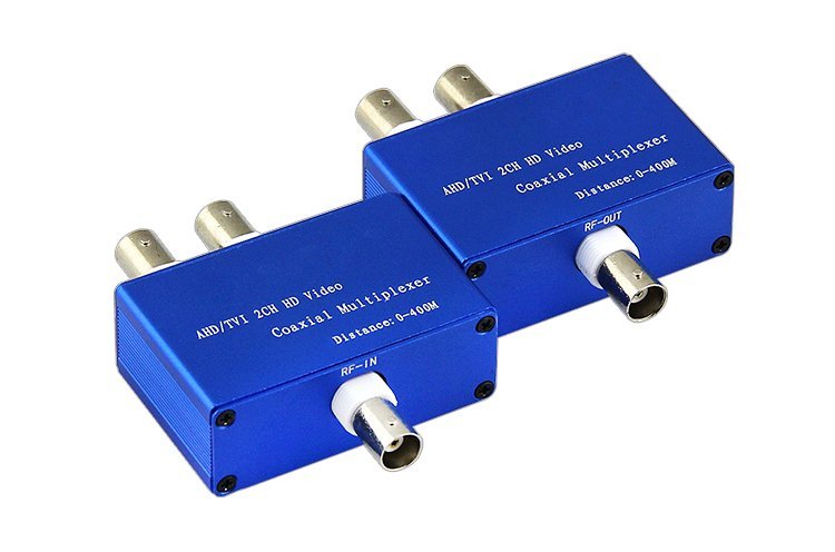 Уплотнитель видеосигнала. Уплотнитель (комплект)видеосигнала AHD: 720P/960P/1080P/3MP/4MP/5MP; CVI:720P/960P/1080P; TVI:720P/1080P/ 3MP; CVBS по коаксиальному кабелю на 2 линии, до 400м; BNC разъемы; DC 12В/1A; -30°- +50°C; Алюминиевый корпус; 64 х 43 х 23 мм