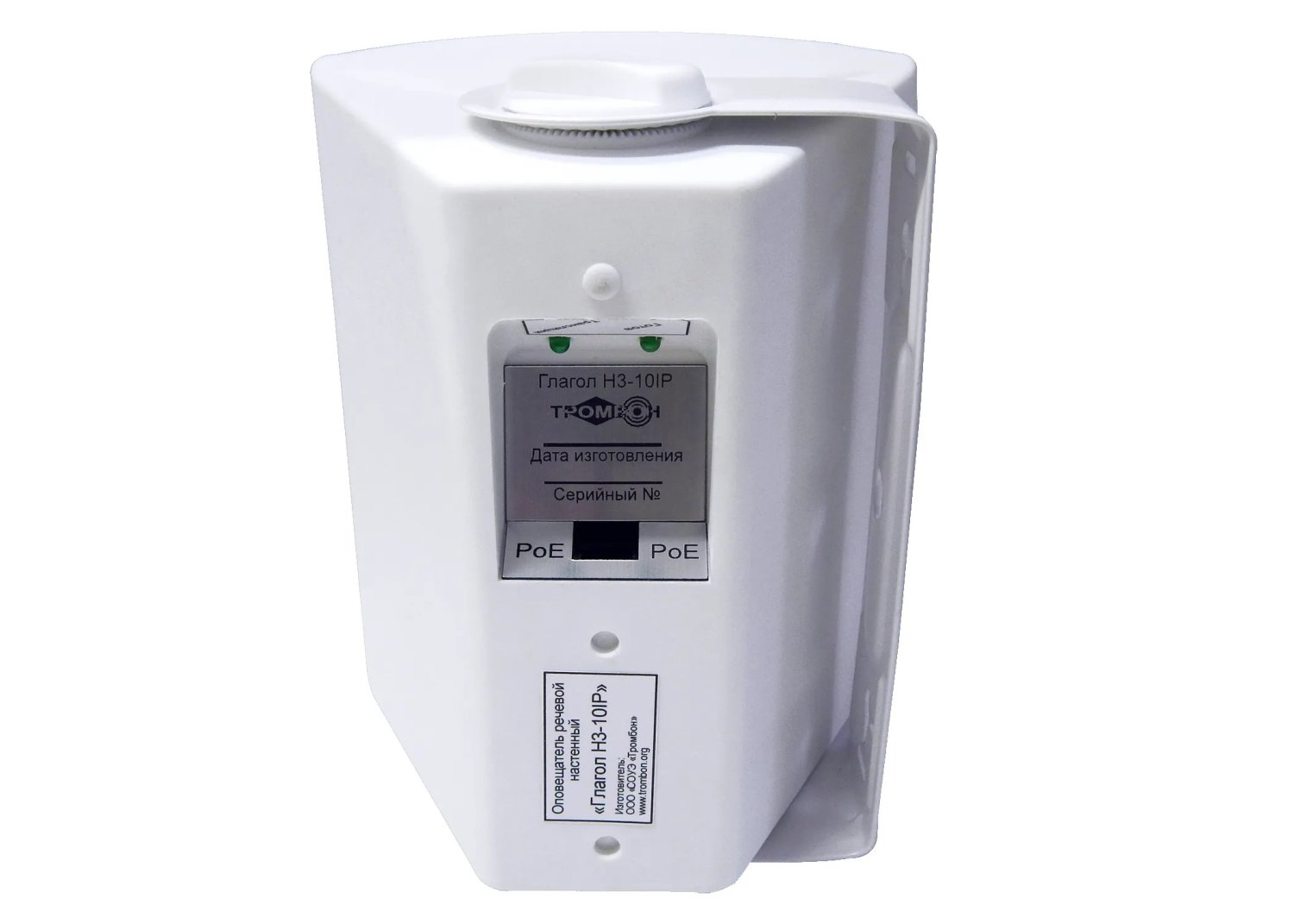 IP оповещатель. IP речевой оповещатель настенный, 10 Вт, 85-20 000 Гц, IP40, разъем LAN PoE, напряжение питания PoE af, 15 Вт, 90dB. Тип корпуса - пластиковый корпус. Цвет-белый. 0...+50°C, 220х175х150 мм.