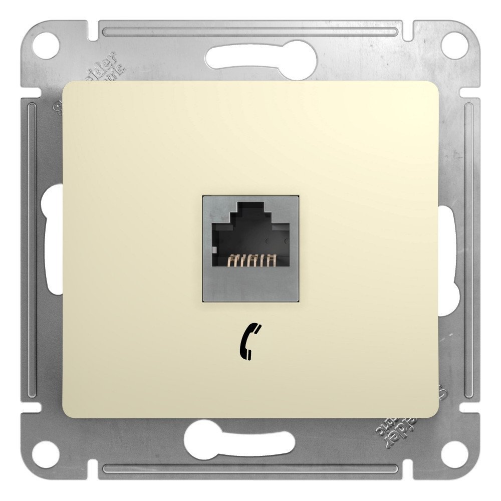 Розетка телефонная. Розетка телефонная RJ11, серия Glossa, цвет бежевый, ШхВхГ 70,8х70,8х34,5 мм