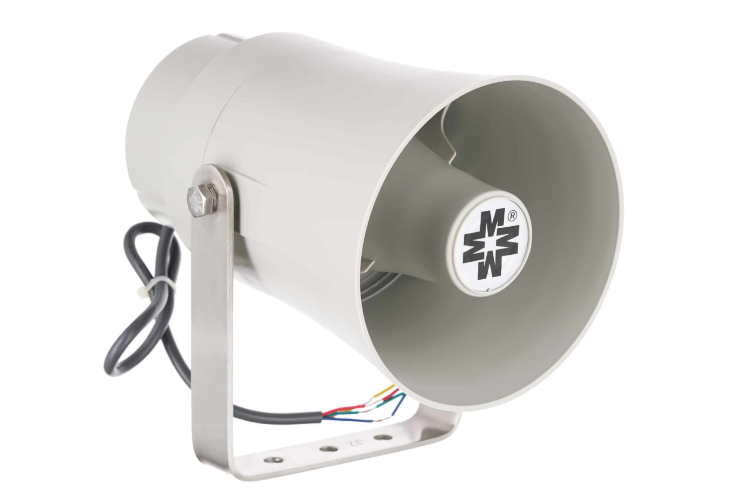 Громкоговоритель рупорный. Громкоговоритель рупорный, 10/5/2,5 Вт, 120В, IP56, ‑50...+55°C, 400‑9 000 Гц, звуковое давление 116 дБ; Материал ABS пластик. D 142х210 мм, 1,7 кг.