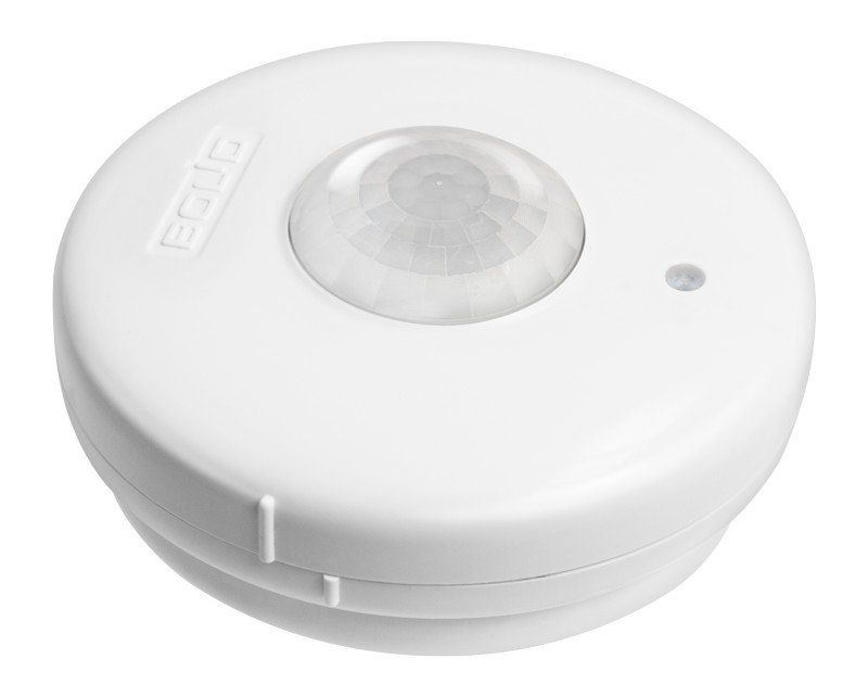 Извещатель охранный объемный оптико-электронный. Охранный объемный потолочный оптико-электронный извещатель, диаметр зоны обнаруж. 12 м (при высоте установки 2.5/3.6 м), термоком., тампер; U-пит. 10...30 В, I-потр. 3.5 мА; IP41, t-раб. -30...+40°C, габ.разм. Ø90х38 мм.