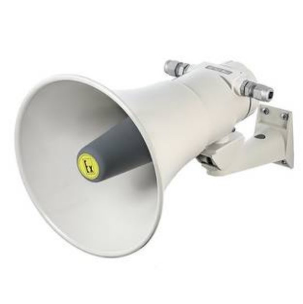 Громкоговоритель рупорный взрывозащищенный с регулировкой мощности. Номинальное напряжение 100 В, мощность 30/25/12,5/6/4/2/1 Вт, полоса пропускания 0,38-6,5 кГц, кабельный ввод для монтажа кабелем в металлорукаве - 15 мм, -60…+55 °С, 1ЕхdIICT6 Х, IP66, Ø280x380 мм, 4,9 кг