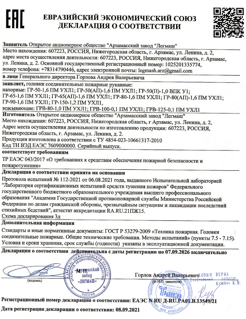 Головка всасывающая соединительная рукавная ГРВ-125 предназначена для быстрого, прочного и герметичного соединения всасывающих рукавов между собой и пожарным оборудованием.