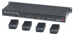 Краткое описание: Матричный коммутатор HDMI 1.4 и ИК сигнала (4 входа/4 выхода) с передачей по кабелю витой пары на удалённый приёмник; Расстояние передачи до 60 м (CAT5e, 1080p), до 70 м (CAT6a, 1080p) (HDBase-T). П