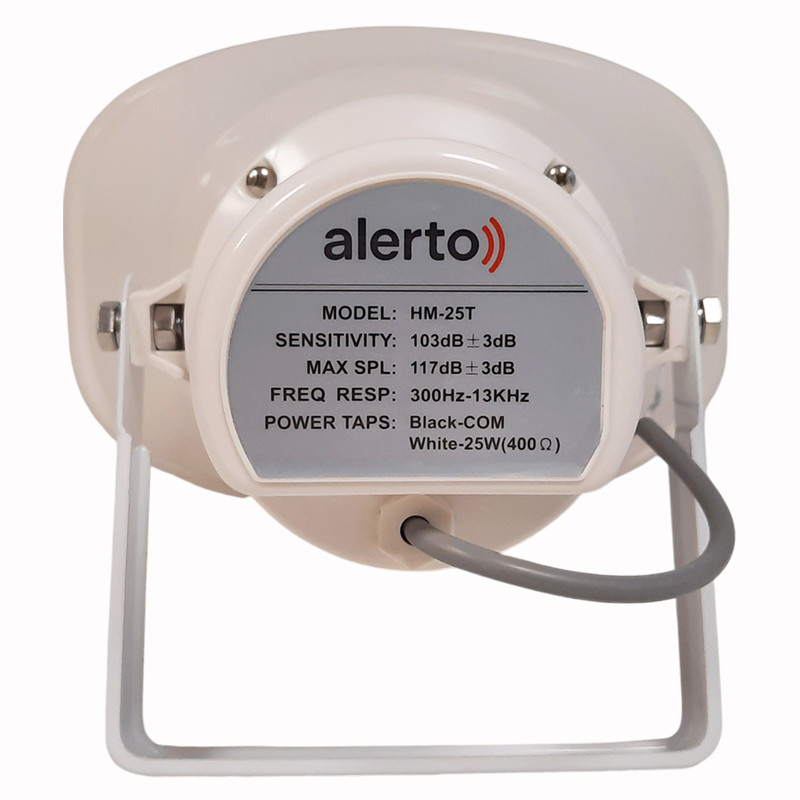 Громкоговоритель рупорный. Рупорный всепогодный трансляционный громкоговоритель. 100В; 25 Вт; 103 +/- 3 дБ; 300-13000 Гц; IP 66; -60...+50°C; 282х210х280 мм; 1,9 кг. Корпус пластик. Металлический кронштейн