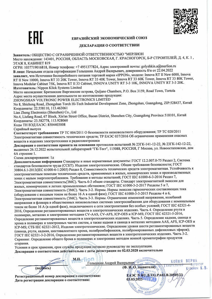 Источник бесперебойного питания. Источник бесперебойного питания On-line 20 000 ВА; АС 380/400/415 В ; Нагрузка 20 000 Вт; Чистая синусоида; 40 АКБ 12 В, 9 А·ч в комплекте; Защита от перегрузки и КЗ; USB; RS232; 0 ...+45°С; 250x686x826.LCD дисплей. Время автономной работы (полная нагрузка) 1 мин.