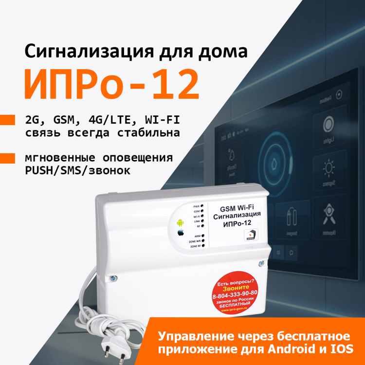 GSM Wi-fi модуль «ИПРо-12» предназначенный для контроля и защиты жилого пространства, бизнеса и инфраструктуры.
