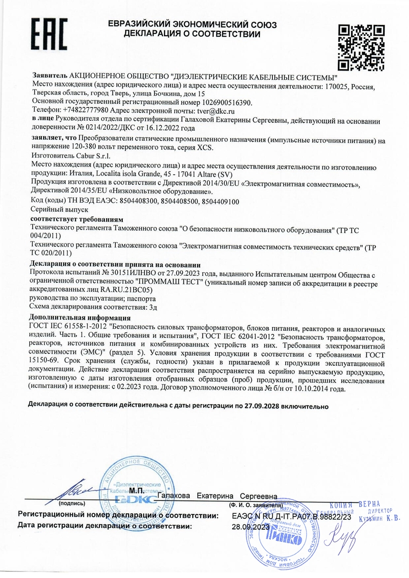 Источник питания однофазный, 500Вт, 10А, 48В (XCSF500D)