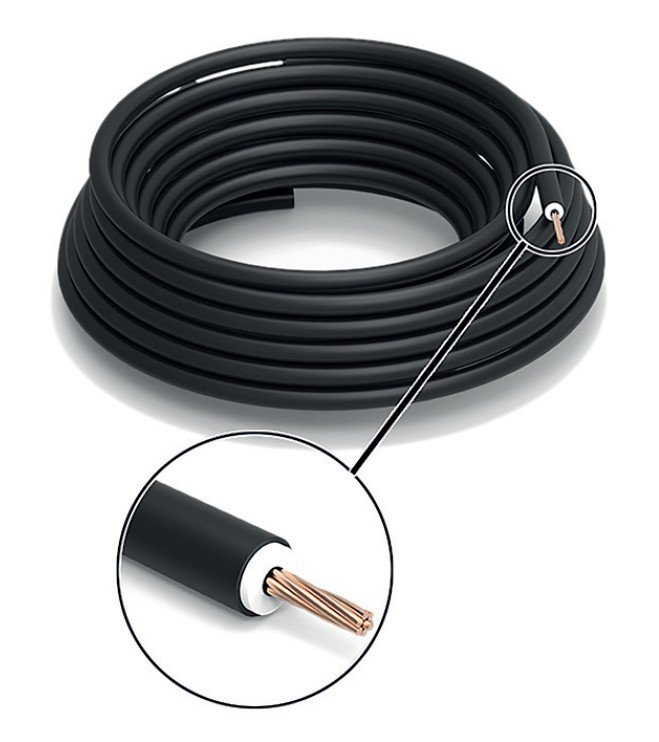 Изолированный токоотвод. Изолированный токоотвод, сечение проводника 35 мм², D по изоляции 23,4 мм, кратность заказа 50 м, цвет черный