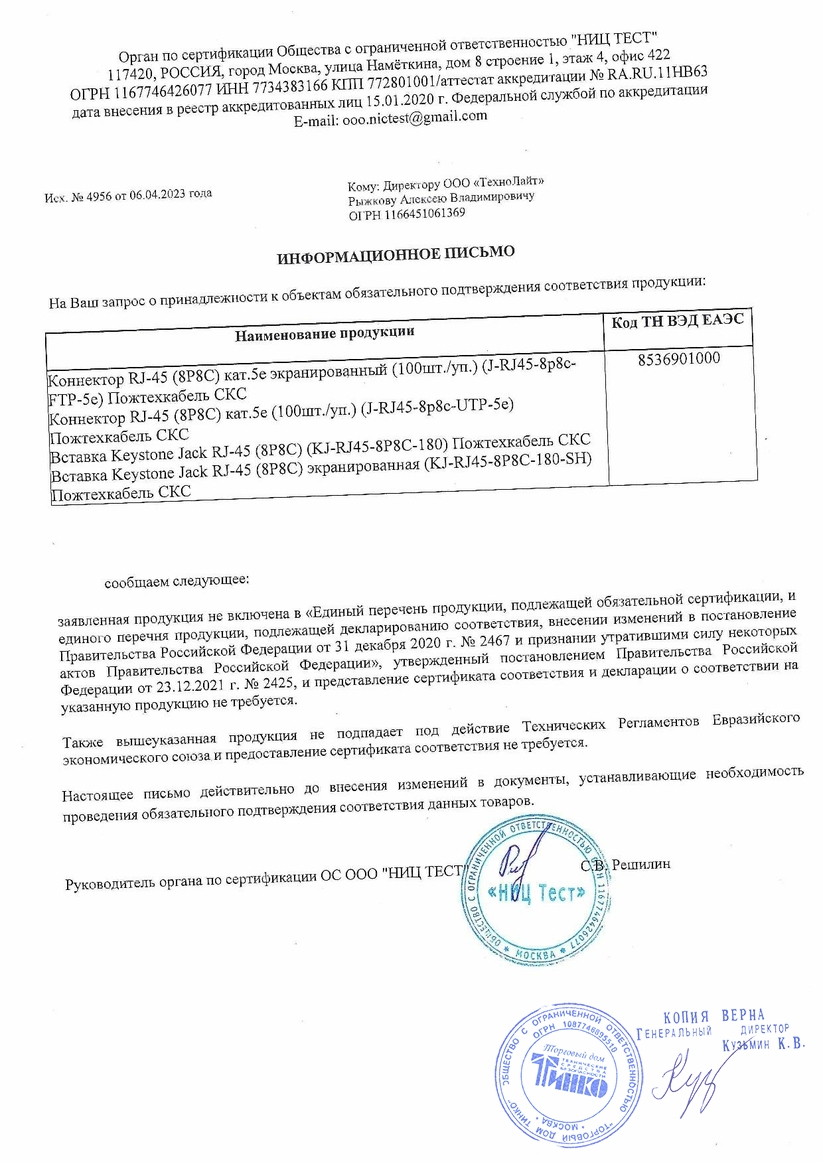 Коннектор RJ-45 (8Р8С) кат.5e. Коннектор RJ-45 (8Р8С) кат.5e (100 шт./уп.); под витую пару; неэкранированный, универсальный