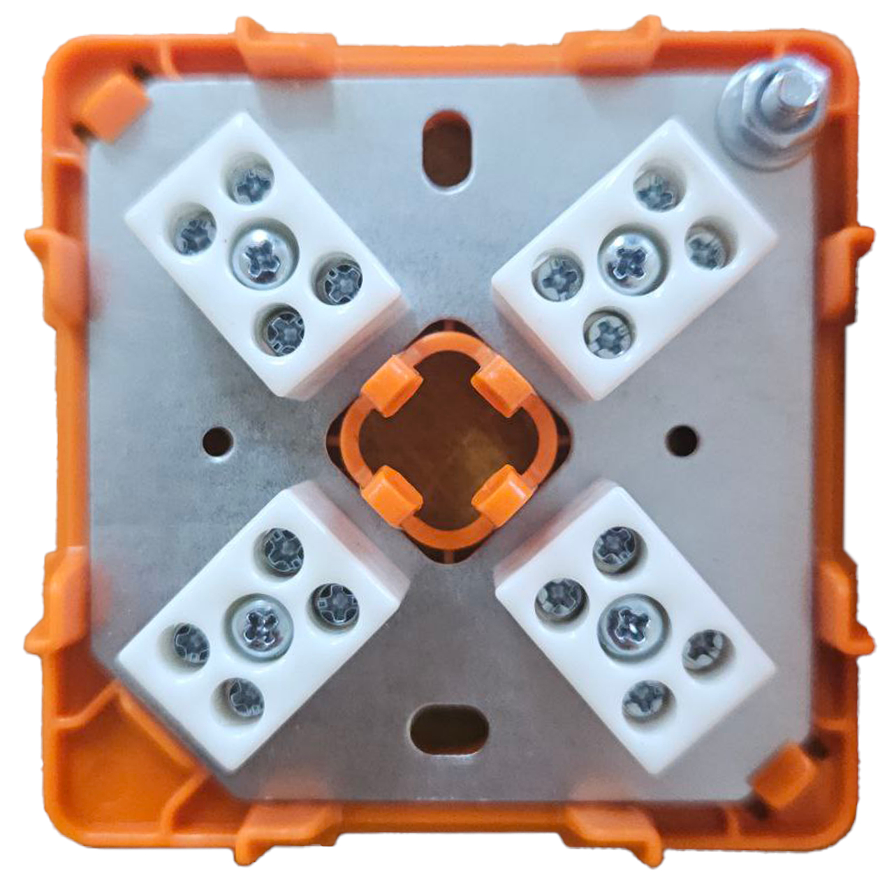 Коробка монтажная огнестойкая. Коробка монтажная огнестойкая; 4 клеммных колодки 2х3.0 мм², U-ном.450 В, I-ном.41 А; 4 ввода; IP41, t-раб.-40…+80°C, 75х75х30 мм