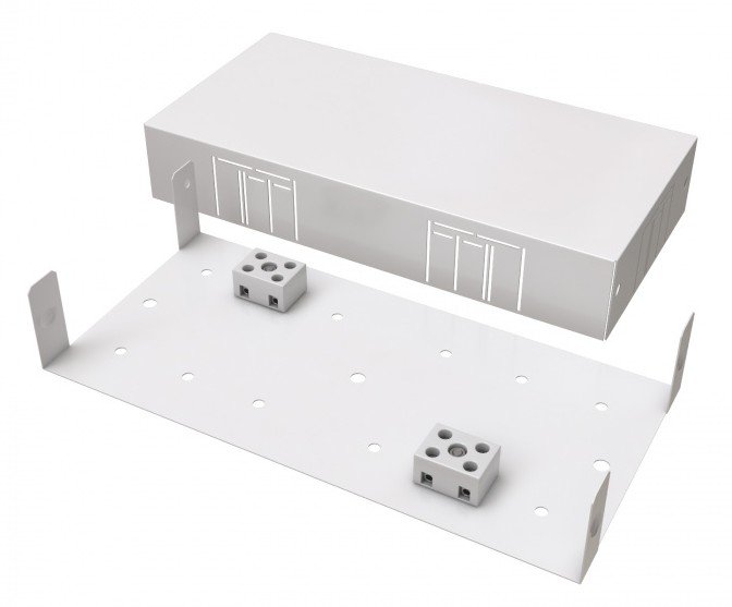 Коробка монтажная огнестойкая металлическая. Коробка монтаж.огнестойкая металлическая, 4 керам.колодки 2х2.5мм², IP31, 150х80х25мм
