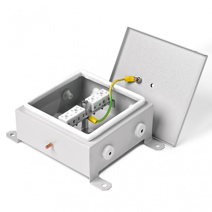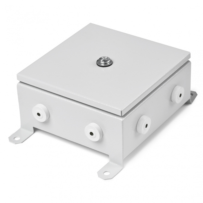 Коробка монтажная огнестойкая пластиковая герметичная. Коробка монтажная огнестойкая металлическая; заземляющий контакт на корпусе и крышке, 3 каб.ввода, 4 полюса, сечение кабеля до 2.5 мм²; IP54, габ.размеры 100х100х60 мм. Цвет серый.