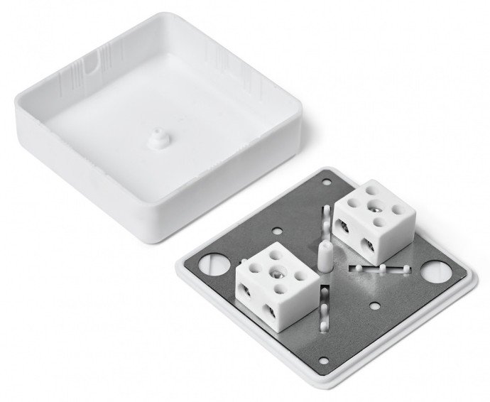 Коробка монтажная огнестойкая. Коробка монтаж.огнестойкая, 2 керам.колодки 2х10мм², IP31, 100х100х30мм