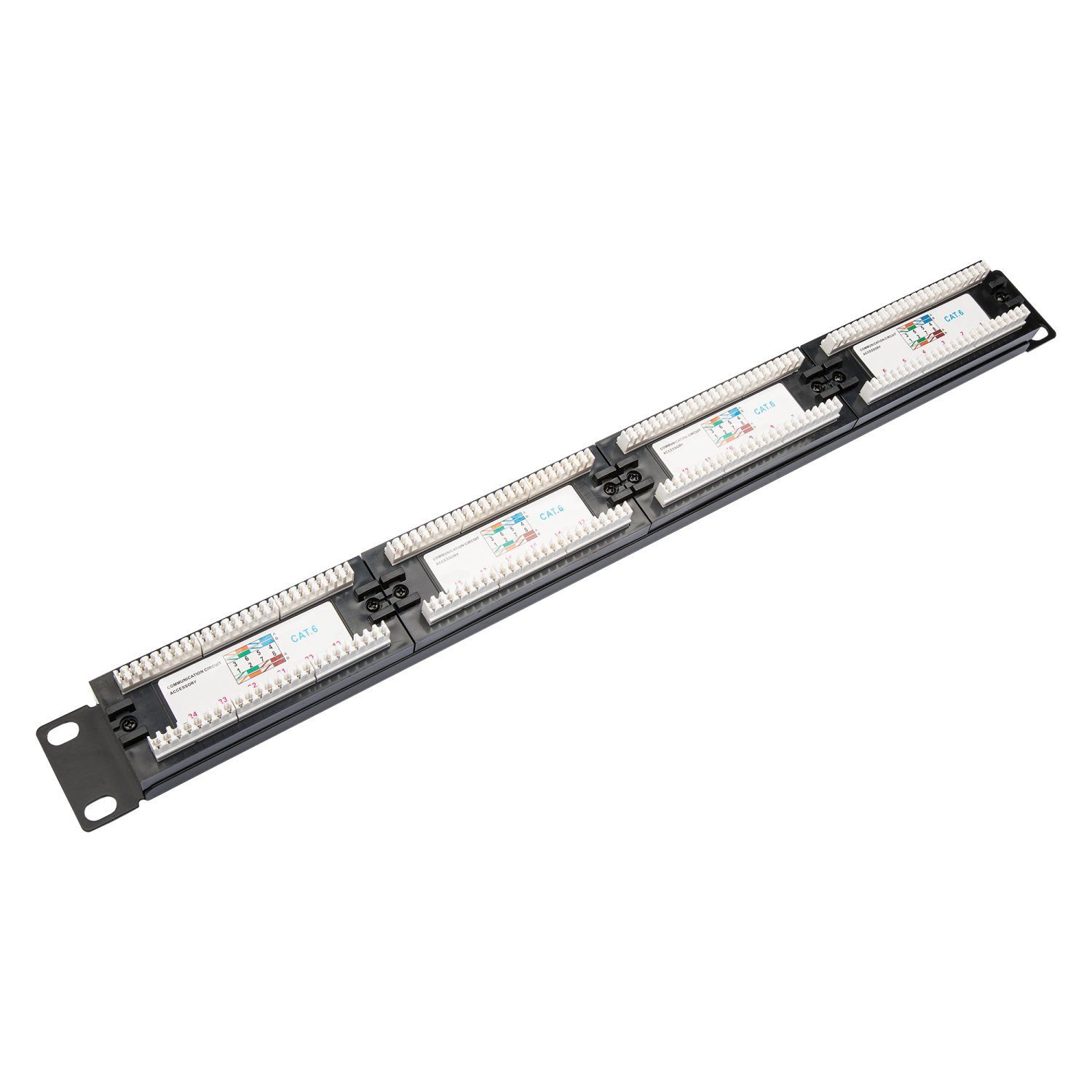 Коммутационная панель. Патч-панель 19", 1U, 24 порта RJ-45 неэкранированная, категория 6, 568A/В, цвет черный.