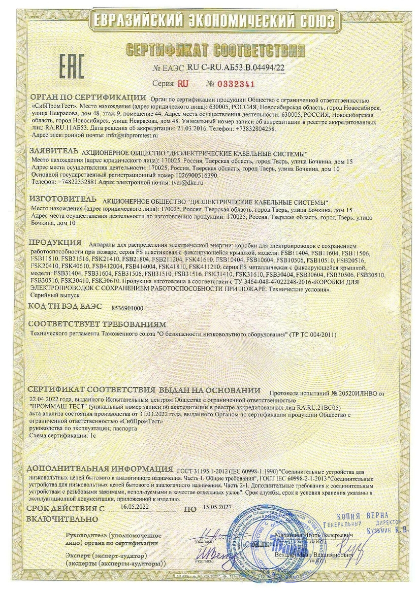 Предназначена для соединения и ответвления проводов и кабелей с сохранением работоспособности при пожаре.