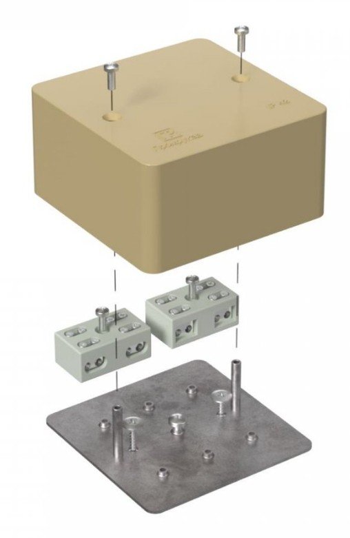 Коробка огнестойкая. Коробка огнестойкая разветвительная для кабель-канала; Е15-Е60; керам.клеммник на 4 полюса, сечение кабеля до 6.0 мм², парные клеммы для разветвления, безгалогенная (HF); УХЛ4, IP42, t-раб.-25…+40°C, габ.размеры 85х85х45 мм. Цвет бежевый (RAL1001).