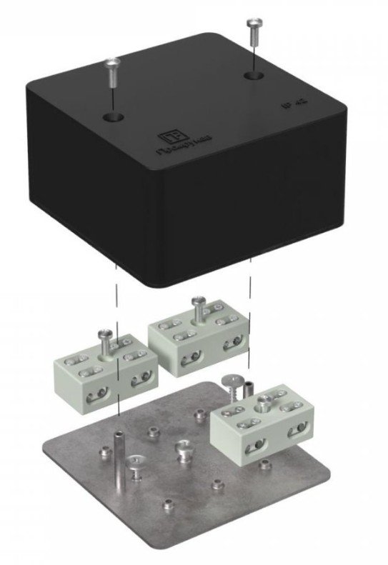 Коробка огнестойкая. Коробка огнестойкая разветвительная для кабель-канала; Е15-Е60; керам.клеммник на 6 полюсов, сечение кабеля до 6.0 мм², парные клеммы для разветвления, безгалогенная (HF); УХЛ4, IP42, t-раб.-25…+40°C, габ.размеры 85х85х45 мм. Цвет черный (RAL 9005).