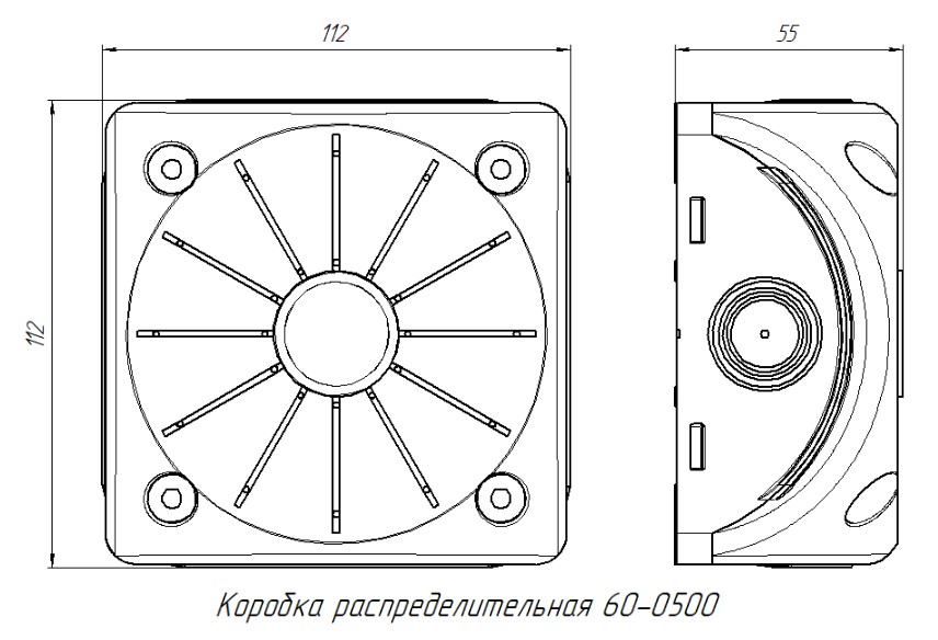 Коробка монтажная. Коробка монтажная, уличная, для установки видеокамер; IP68, -50...+60°C, 112х112х53 мм Цвет черный