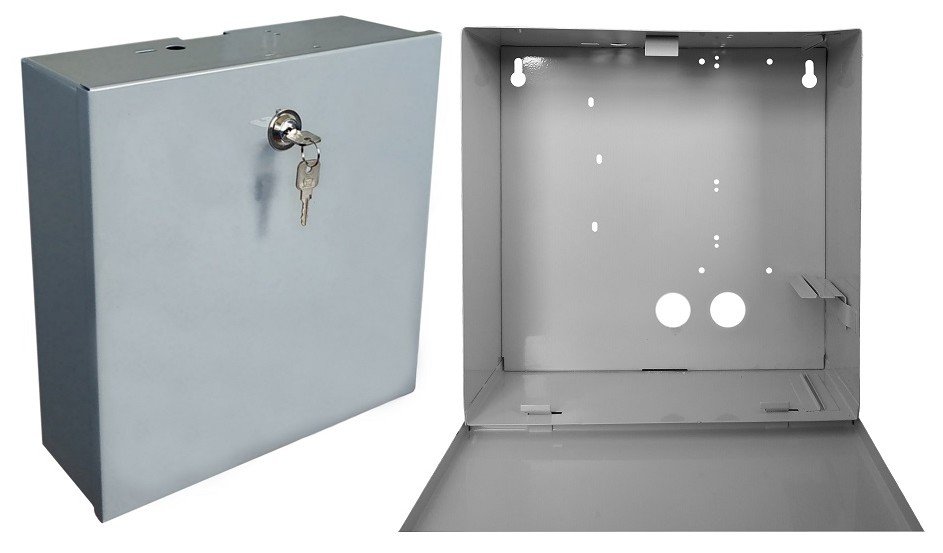 Металлический корпус с замком. Универсальный металлический корпус с замком для радиоаппаратуры, габ.размеры 290х290х100 мм