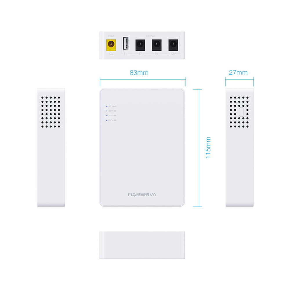 Источник питания специализированный. Портативный резервированный источник питания, 36 Вт·ч, 10000 мА·ч; U-вх. DC 12 В 2A (БП в комплекте); U-вых. DC 12В (2.0А), DC 9В (2.0А), DC 5В (2.0А), USB DC 5В (2.0А), 18 Вт; 4 АКБ Li-Ion 3.6 В, 2500 мА·ч; -15…+50°C; 115х83х27 мм.