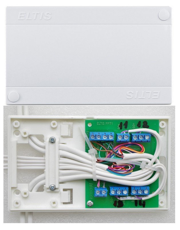Коробка соединительная для домофонов серий DP420, DP400 DP300, DP303, DP305, DP5000. Предназначена для установки на этажах домов и подключения аудиолиний абонентских устройств.Обеспечивает:- подключение 4-х абонентских устройств к проводникам кабеля координатно-матричной домофонной системы;- защиту домофонной системы от неправильного подключения абонентских устройств (короткого замыкания или «переполюсовки» линии абонента).Использование ELTIS KC-4.1 повышает качество монтажа, значительно сокращает количество вызовов из-за ошибочных действий пользователей и повышает удобство обслуживания. Рекомендована при монтаже домофонных систем на новостройках из-за частых случаев «переполюсовки».Не требует питания. Коммутация — винтовые колодки. Малогабаритный плоский корпус для удобства размещения в нишах слаботочных стояков или боксах. Предусмотрены отверстия для крепления на стену и зажим для DIN-рейки. Планка фиксации кабелей внутри корпуса для предотвращения «выдергивания». Конструкция крышки корпуса позволяет производить опечатывание для выявления несанкционированного вскрытия.