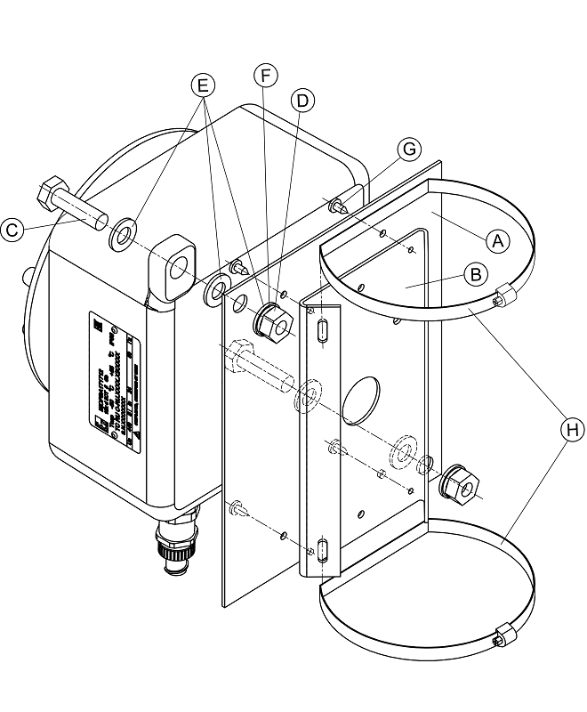 Кронштейн для крепления на столб. Кронштейн для крепления коробок монтажных КМ-1 ВБ, КМ-2 ВБ, блоков питания уличных БПУ-2-220VAC-24VDC/2,0A ВБ на квадратные и круглые опоры D 115…135 мм (другой размер - под заказ).
