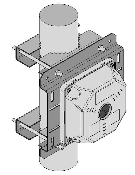 Кронштейн для крепления на столб/трубу КСТ АЯКС (далее кронштейн) является универсальным устройством и предназначен для крепления на столб, трубу или иную опору диаметром 30-100 мм приборов различного назначения: коробок коммутации, ящиков, источников питания, видеокамер, светильников, устройств оповещения и т.п.