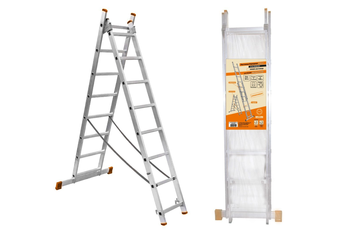 Лестница алюминиевая. Лестница алюминиевая, 2 секции по 7 ступеней, h=2880 мм.