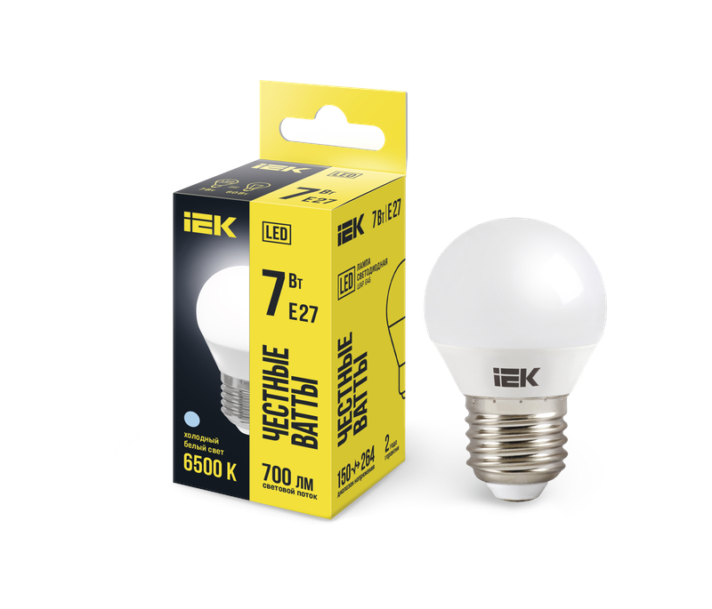 Лампа светодиодная G45 шар 7Вт 230В 6500К E27 (LLE-G45-7-230-65-E27)