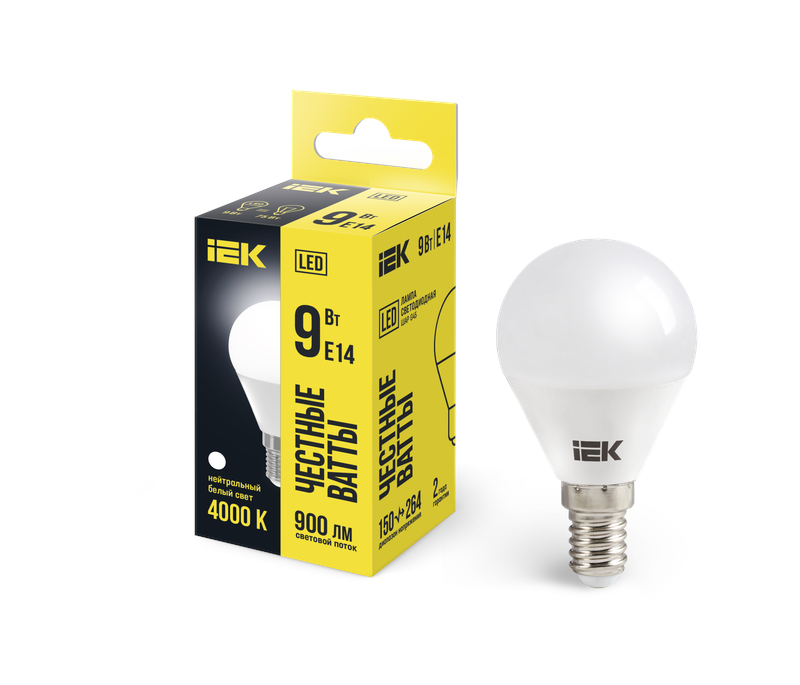 Лампа светодиодная G45 шар 9Вт 230В 4000К E14 (LLE-G45-9-230-40-E14)