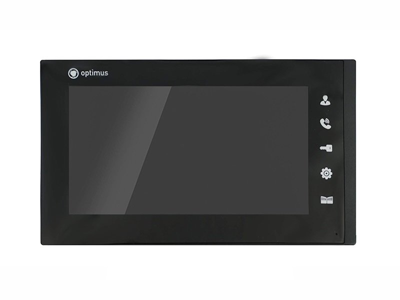 Монитор видеодомофона цветной. Монитор видеодомофона 7" TFT LCD, разрешение 800х480, CVBS, PAL/NTSC, продолжительность беседы 120 сек., сенсорные кнопки. Подключение: До 2х комплектных вызывных панелей, до 2-ух аналоговых камер. Управление внешним замком монитора. IP54, 100-240 В (встроенный БП), цвет: Черный, 0...+50°C, 200х122х21 мм.