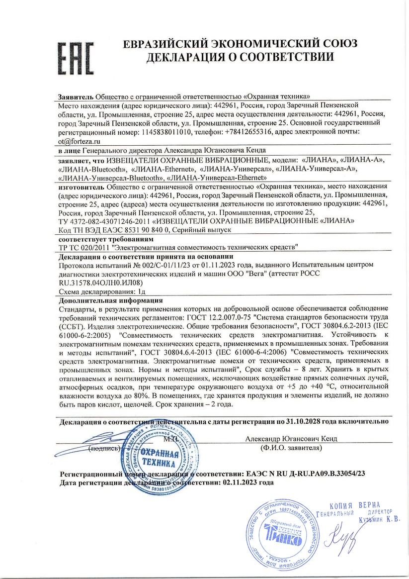 Изделие относится к вибрационным средствам охраны периметра и регистрирует деформацию кабельного чувствительного элемента, закрепленного на полотне или козырьке сигнализационного заграждения. Блок обработки сигналов изделия имеет четыре входа для подключения до четырех чувствительных элементов (по два ЧЭ на участок), четыревыходных реле и выход USB.Извещатель применяется для защиты сетчатого или решетчатого заграждения от попыток перелаза через него или разрушения.Извещатель используется на объектах со сложной конфигурацией периметра, т.е. когда экономически нецелесообразно применять радиоволновые извещатели или невозможно организовать зоны отчуждения для радиоволновых извещателей.