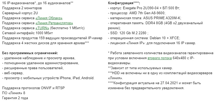 IP-видеосервер 16-канальный. Видеосервер IP 16 канальный до 10 Мп; по протоколу ONVIF/RTSP; H.265, H.264, MJPEG; 1хVGA; 1хHDMI независимые; 4 HDD 3.5" до 12Тб; 1хRJ-45 10/100/1000 Ethernet TCP/IP, RSTP (прием/передача), DNS, DDNS, NTP, SMTP, FTP, SMB, HTTP; ПО «Линия» 8 версия; полноценное локальное и удаленное администрирование, Web-сервер на базе HTML5, Аналитика: объектно ориентированный детектор движения по всем каналам, Линия Облако,USB: 4x 2.0; 4x3.1; 1x PS/2; 3x Audio jack, АС 220В; +5°...+50°C; 425х483х89 мм. Монтаж в 19" стойку.
