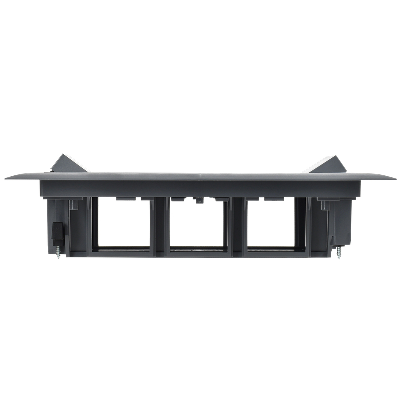 Лючок напольный ONFLOOR 12. Предназначен для организации рабочих мест в офисных или административных помещениях. В лючок можно установить 12 модулей (6 постов 45х45 мм / 12 модулей 45х22,5). Монтаж осуществляется в две рамки на 6 модулей каждая. Возможна установка лючка в фальшпол толщиной от 10 до 40 мм, необходимое монтажное отверстие для установки лючка 218х288 мм, либо в бетонный пол с обязательным использованием коробки напольной, в зависимости от толщины бетонного слоя: 57-75 мм: KNU-12-PA-9011; 80-95 мм: KNU-80-16-PA-9011 (рама лючка крепится на коробке напольной с помощью винтов диаметром 3,9x13 мм, которые поставляются в комплекте). Крышка лючка имеет небольшое углубление, усиленное стальным листом, для монтажа напольного покрытия с максимальной толщиной 7 мм (рекомендуемые напольные покрытия - ковер или ламинат). Крышка содержит 2 откидных вывода с мягким материалом, которые позволяют организовать вывод кабелей из лючка. Степень защиты IP30 - коробка не предназначена для влажной уборки. Конструкция лючков рассчитана на максимальную нагрузку 1500Н.