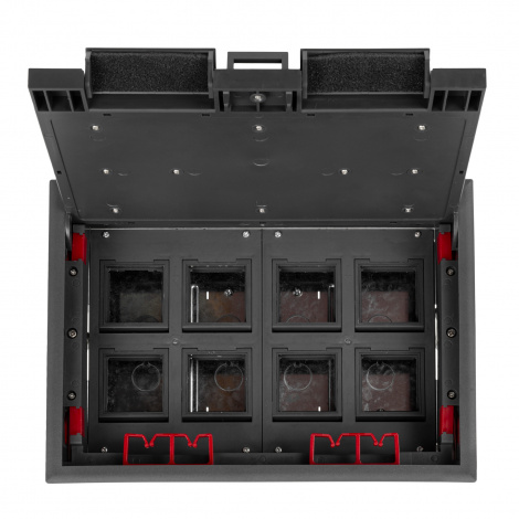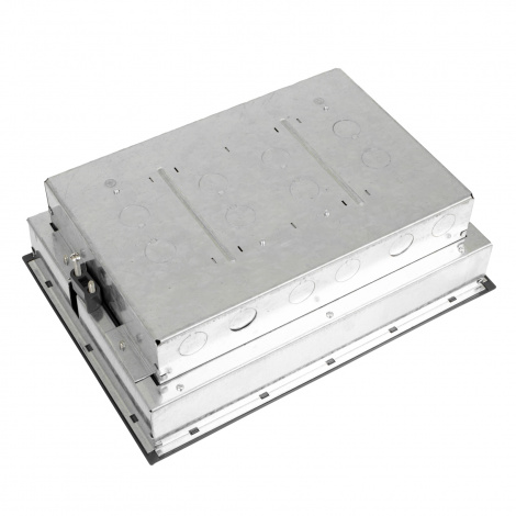 Лючок напольный. Лючок напольный, 16 модулей, горизонтальный, пластиковая крышка, серый, глубина монтажа 20-60 мм, 350х230х120 мм.