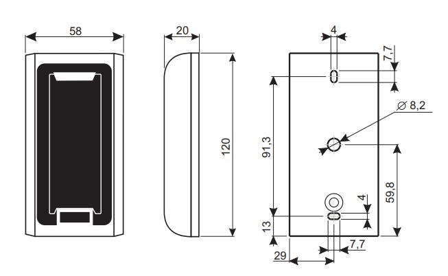 Не предназначен для работы с импульсными блоками питания!!!Заводская прошивка работает только с EM-Marine и Temic, для HID (ProxCard II) требуется специальная прошивка.