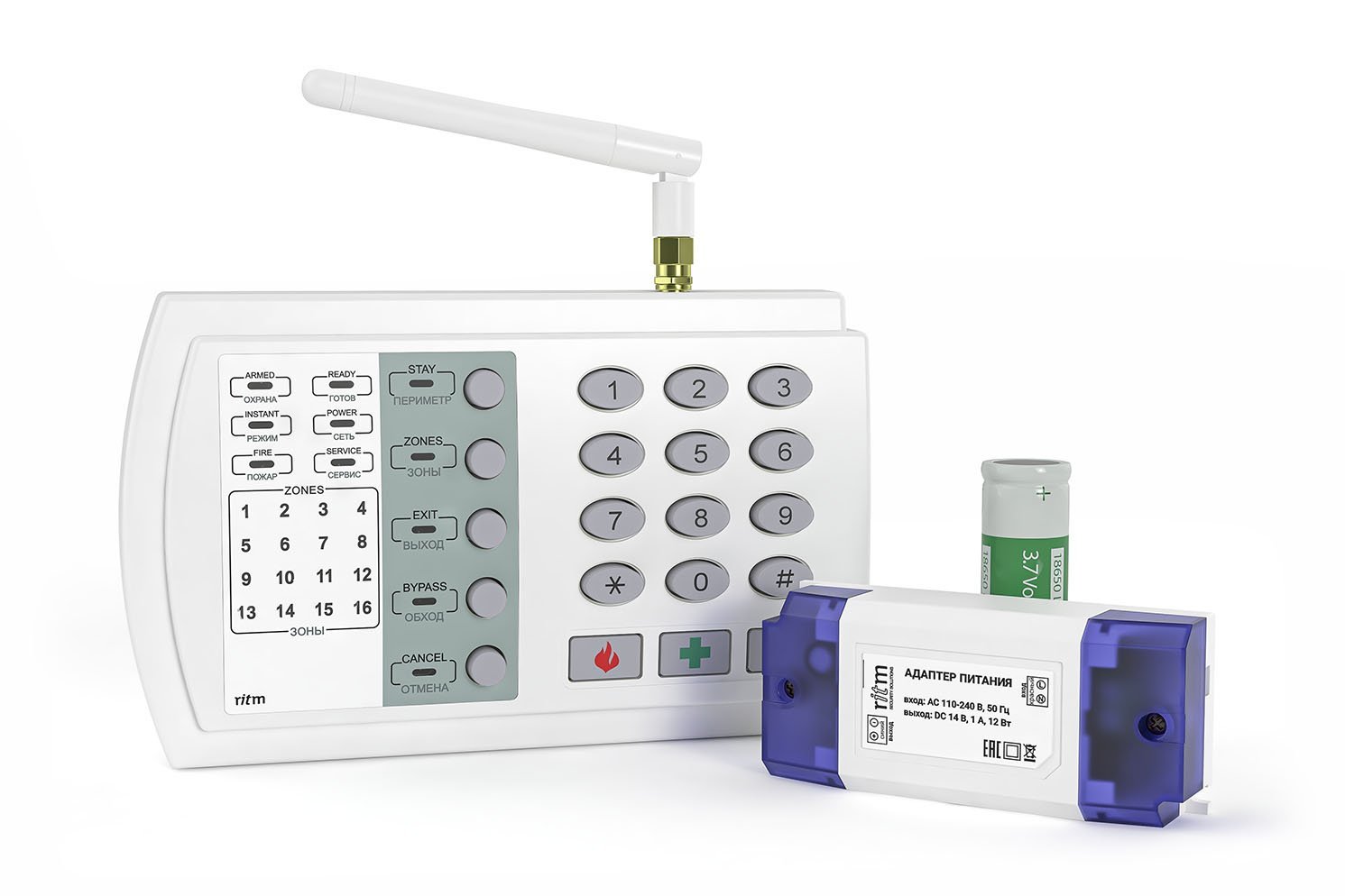 Панель охранная радиоканальная. Радиоканальный охранный объектовый прибор; передача извещений на ПЦО/приложение GEO.RITM/SMS/звонок; 1 ШС, до 32 радиоканальных извещателей (f-раб. 433 МГц), до 16 радиомодулей (радиосирен, радиотабло, радиореле), до 32 разделов; управление с помощью радиобрелоков (до 32), клавиатур (до 3-х радио RKB1(2), проводная КВ2-3), ТМ (до 256 кодов), GEO.RITM (дистанционно); 2 SIM карты (только GPRS), Micro-USB; 2 выхода "ОК" по 170 мА на каждый; U-пит. 12...14 В, I-потр. ≤150 мА; t-раб.-25…+55°C, габ.размеры 160х100х35 мм. В пластиковом корпусе со встроенной клавиатурой, БП (∼220В/=14В) и аккумулятор (типоразмер 18650, 3.7 В) в комплекте.