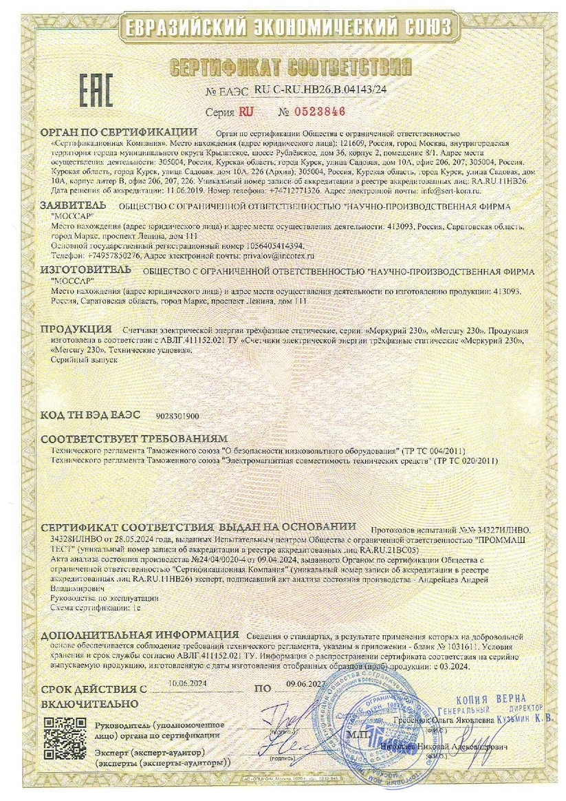 Меркурий 230 ART-01 PQRSIN 3ф 5-60А 1.0/2.0 класс точности, многотарифный (М0000051910)