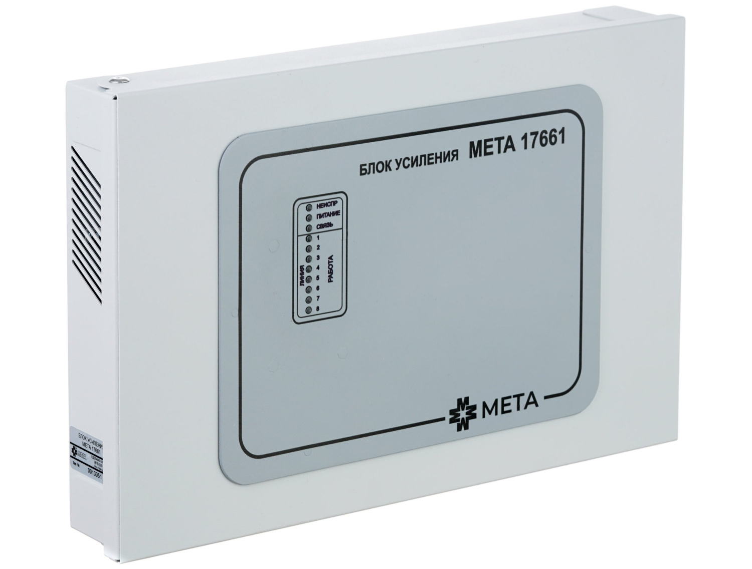 Блок усиления, 8 каналов, монтаж на стену. Блок усиления на 8 каналов; работает совместно с пультом МЕТА 18740; 100Вт; 30В; интерфейс связи RS-485; 220В AC/26В DC; 5А; встроенная грозозащита каждой линии; 370х270х62 мм