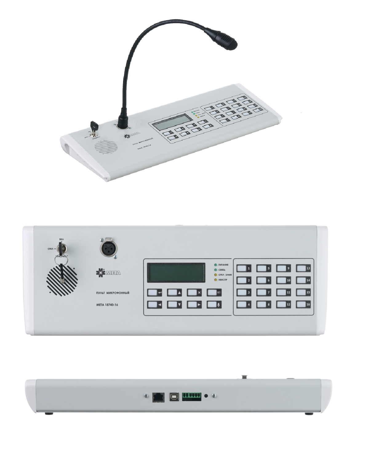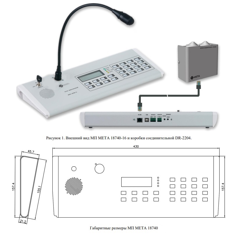 Пульт микрофонный 40 зон. Пульт микрофонный МЕТА 18740-40; 40 зон; предназначен для прямой трансляции сообщений через микрофон; создания двусторонней связи между помещениями пожарного поста диспетчерской и зонами пожарного оповещения в составе систем СОУЭ 4-го и 5-го типа, управления эвакуацией диспетчерской связи (в том числе для МГН); работает с приборами МЕТА 17560/19560; подключение по RS-485; максимальная удалённость 600м; 490х160х55 мм