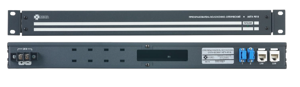 Преобразователь волоконно-оптический МЕТА 9018 выполнен в металлическом корпусе темно-серого цвета. Предназначен для установки в телекоммуникационный шкаф или аппаратную стойку типа 19" RACK.